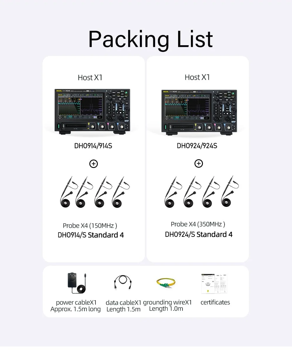 • Accessories: Power cable, USB cable, ground wire, probe x 4